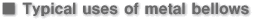 |   Bellows are used as parts for automatic control, measuring units, pressure & vacuum sealing, sealing of rotary parts, rotary feeds, vibration & expansion absorbers, pressure transmissions, length & position adjustment and pressure adjustment. |
