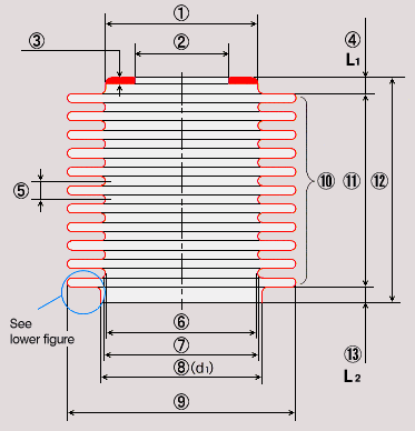 Multiplied bellows are producible by putting a number of tubes together as shown in the figure. This type of bellwos is effective in improving the characteristics.